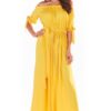 długa sukienka z hiszpańskim dekoltem – żółta