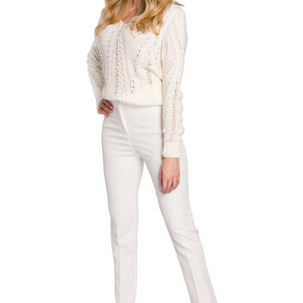 spodnie tkaninowe z rozcięciem na nogawce – ecru